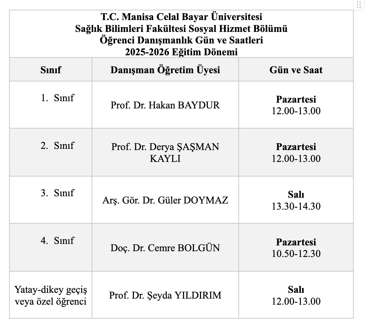 Öğrenci Danışmanlık Saatleri